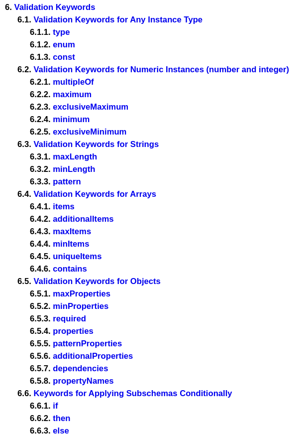 Rules on how JSON input can validate against the given schema. This can be of various types such as TypeValidations, Conditional, Regex Patterns etc