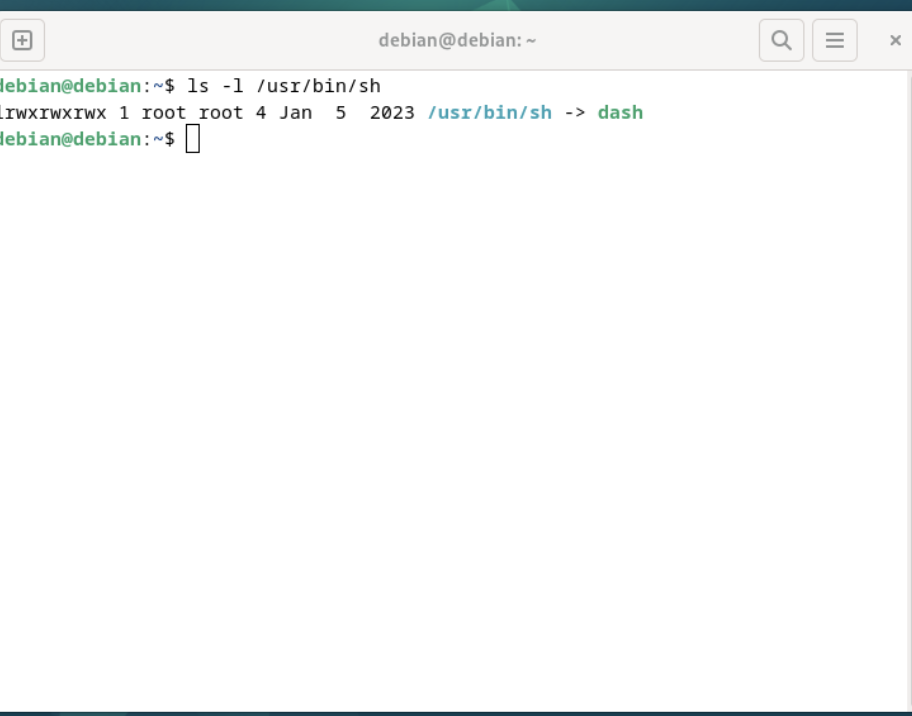 The screenshot below shows a Debian distro whose default shell symlinks to dash.