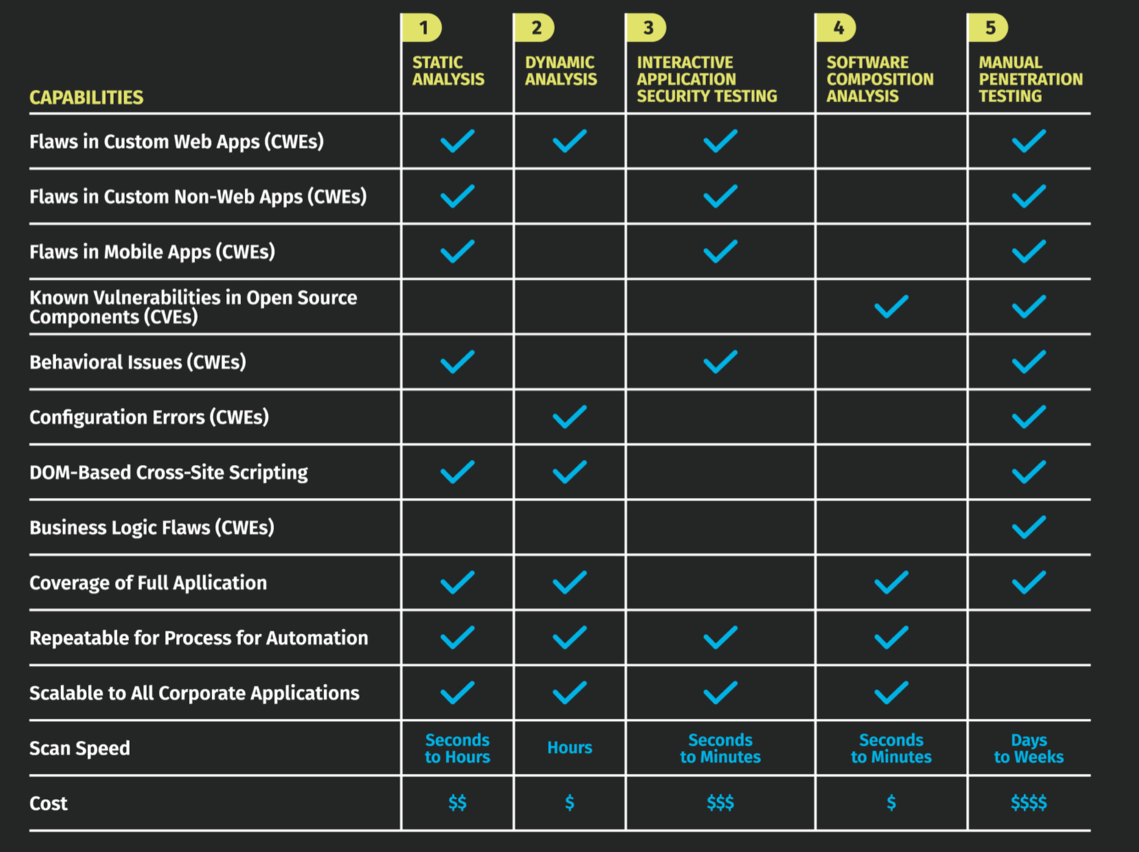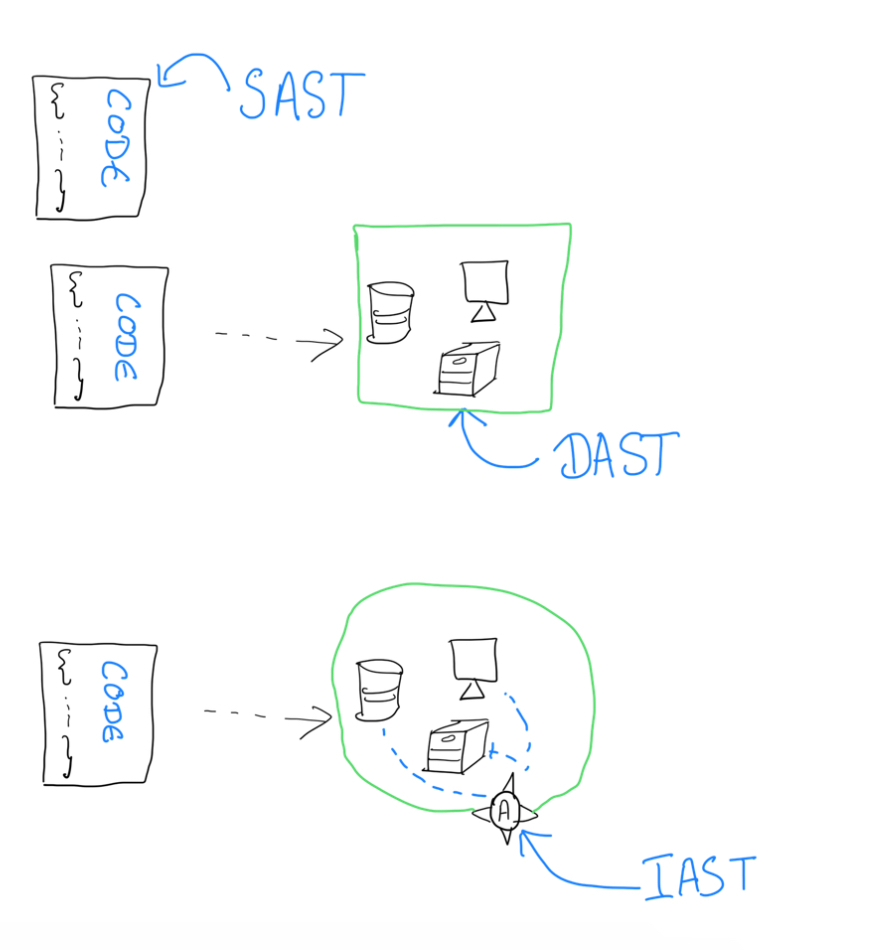 | IAST | Invicti, Semgrep, Contrast security | Interactive testing by embedded to running application and running security test against application | Requires agent to run which may not be available for a particular language | Ability to see source code like SAST while running real security attacks like DAST |